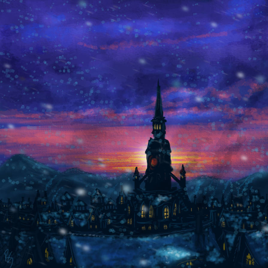 Once again, I tried doing a familiar location, but with a visible season change. I imagined frosted spiderwebs making for quite the festive winter-wonderland look.