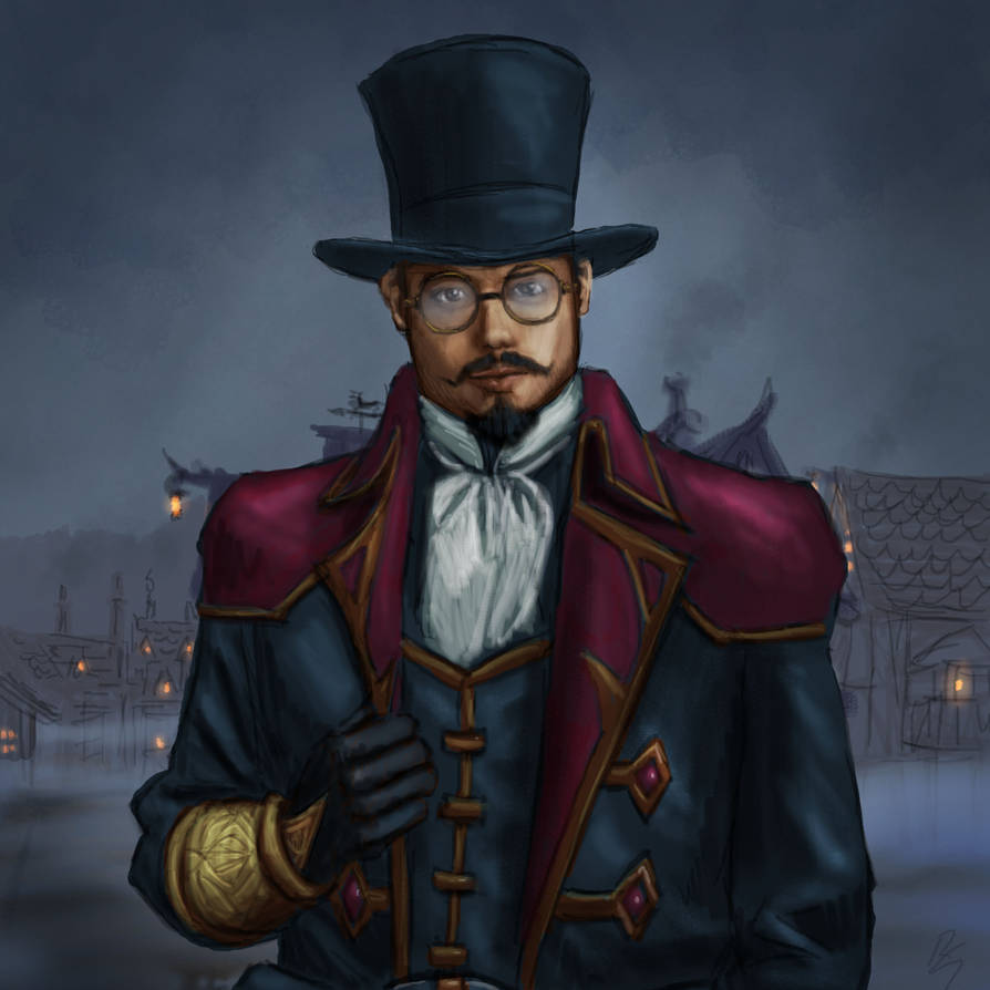 (Building upon the Gilneas City backdrop I put up above.) A portrait of a gentleman of the reconquered and (partially) restored Gilneas City. It's still a pretty rough place, after the Cataclysm, the Worgen curse, the fall of the Great Wall of Greymane, the Forsaken Incursion, that whole business with the Shadowlands unleashing undead hordes upon Azeroth, etc., but, hey, it's got that creepy perpetually-overcast, fog-shrouded, fantasy-pseudo-Victorian charm to it (plus the occasional werewolf).