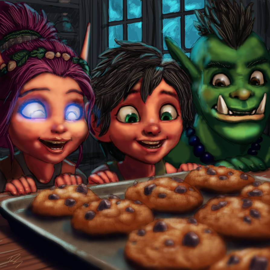 A recipe article illustration for an imaginary Azerothian newspaper. For something a little different (for me, anyway), I tried blurring out the FOREGROUND cookies. I was having trouble making them come out the way I wanted anyway.